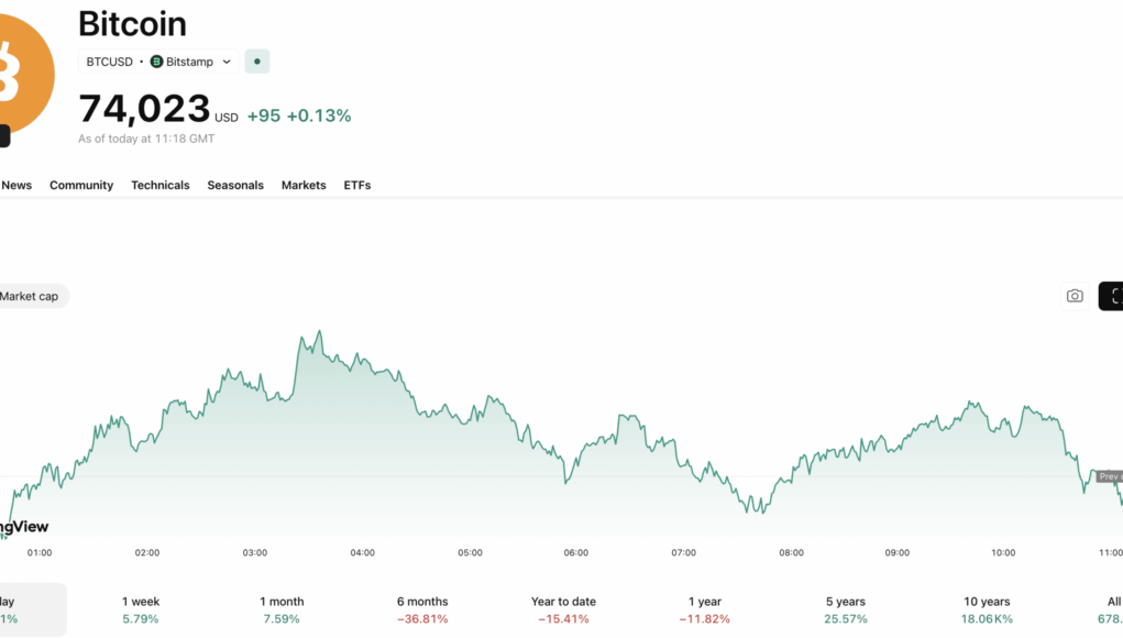 It comes as Bitcoin spent the past 24 hours making very little moves in either direction, up just +0.2% on the daily chart as it trades for $73,900, with $34Bn in daily trading volume.