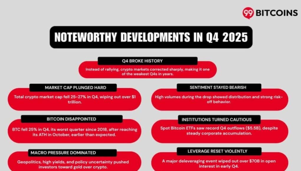 The post Crypto’s “Best Quarter” Didn’t Show Up: Q4 2025 Wiped $1T As Bitcoin Slid And Institutions Split appeared first on 99Bitcoins.