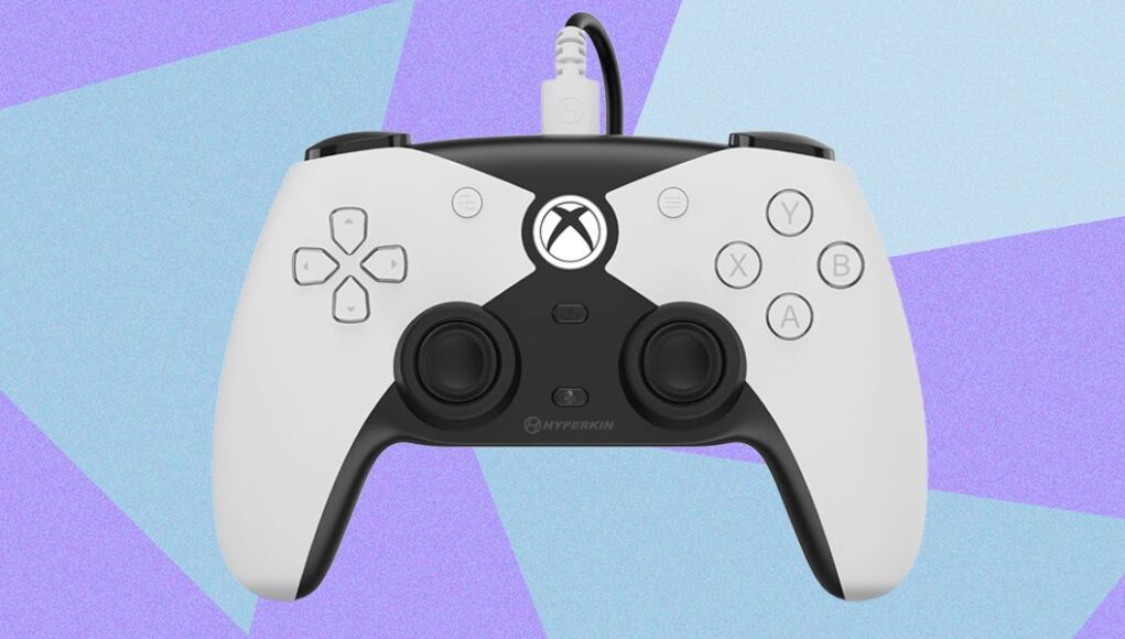 The most immediately striking difference is that Hyperkin’s product swaps the typical Xbox approach of asymmetric thumbsticks for the PlayStation’s horizontal layout. It also separates the D-pad (it’s one piece inside the pad, but splits its cardinal directions so each appears to be its own button), while the ABXY face buttons are spaced slightly further apart. Where the DualSense’s touchpad would sit, we have the Xbox home, menu, view, and share buttons, all blended in rather smartly. An LED ring around the home button just about echoes the lights running the periphery of the DualSense’s touchpad, although it’s really more of an inversion of the regular Xbox controller, where the home button itself lights up.