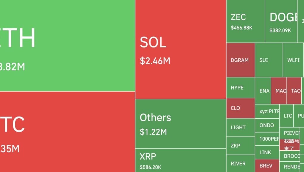 Hyperliquid took the hardest hit. The rising perpetual exchange logged roughly $45M in liquidations during the sell-off.