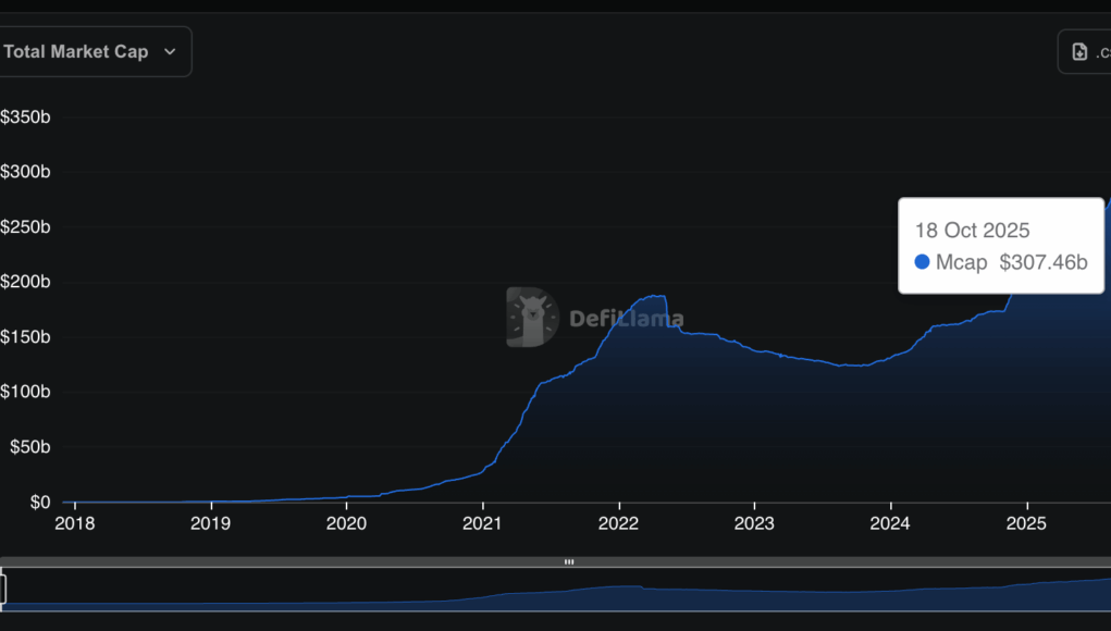 The stablecoin market just set a new record. The total value of dollar-pegged cryptocurrencies has climbed to about $307 billion, the highest on record, even as broader crypto prices remain uneven.