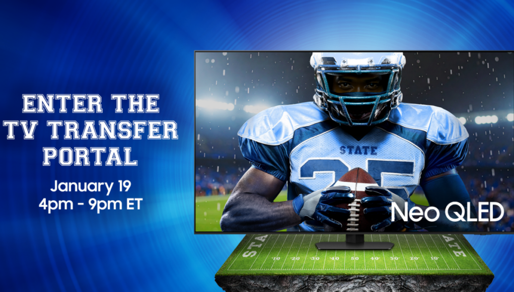 Samsung has a pretty hilarious escape plan for you if you’re stuck watching the national championship on a screen that’s seen better days. The brand just launched its first-ever TV Transfer Portal, which is basically a bribe to get you to a watch party with a better TV.