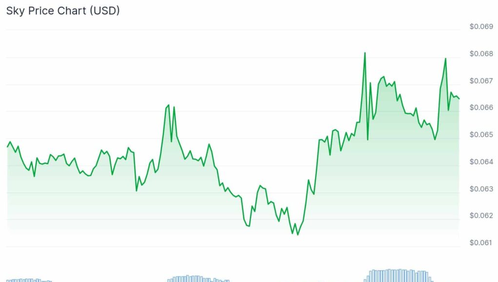 SKY, the governance token of Sky Protocol, traded between $0.066 and $0.067 across major exchanges, including Binance, Coinbase, and Kraken.